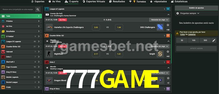 A aposta 777GAME oferece aos jogadores a experiência mais conveniente de apostas em eSports!
